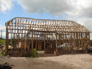 Three Bay, Queen Strut and Queen Post Gable Ended Roof Construction.